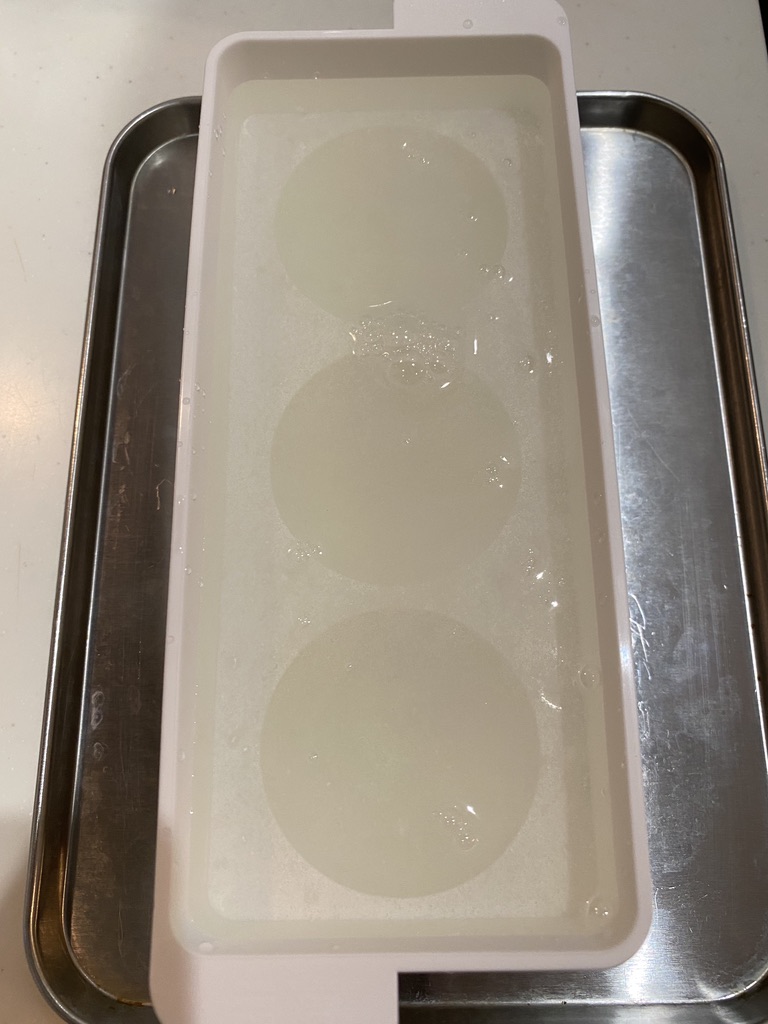あとは冷蔵庫で固めれば透明度抜群の水信玄餅風ゼリーの完成です!