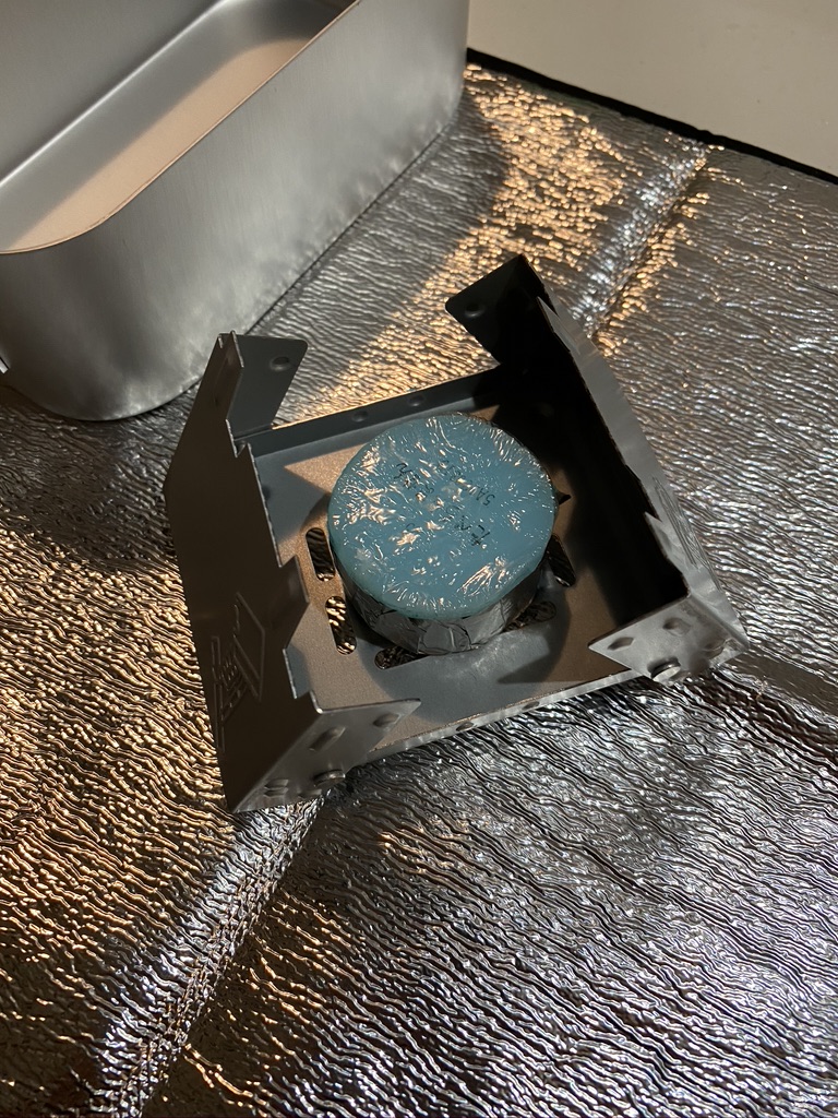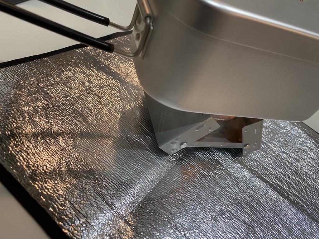 自宅のキッチンで作りましたので、固形燃料の下に敷くバーナーシートも買いました。
