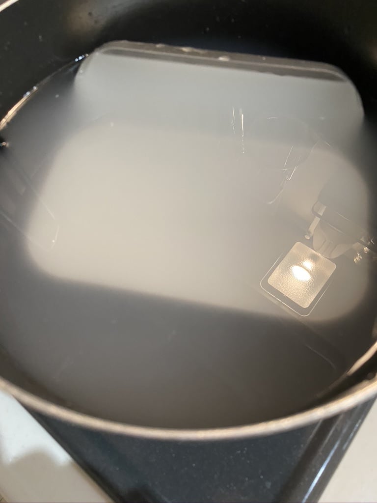 一般的には米の研ぎ汁で煮る、野菜のクズと一緒に煮込むやり方があるようですが、米の研ぎ汁でメスティンを煮てみました。