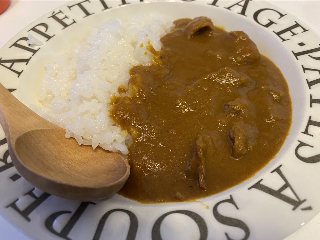 前回のレシピに比べてソースコを使ったことで辛味が本家インデアンカレーに近づけたかなと思います!