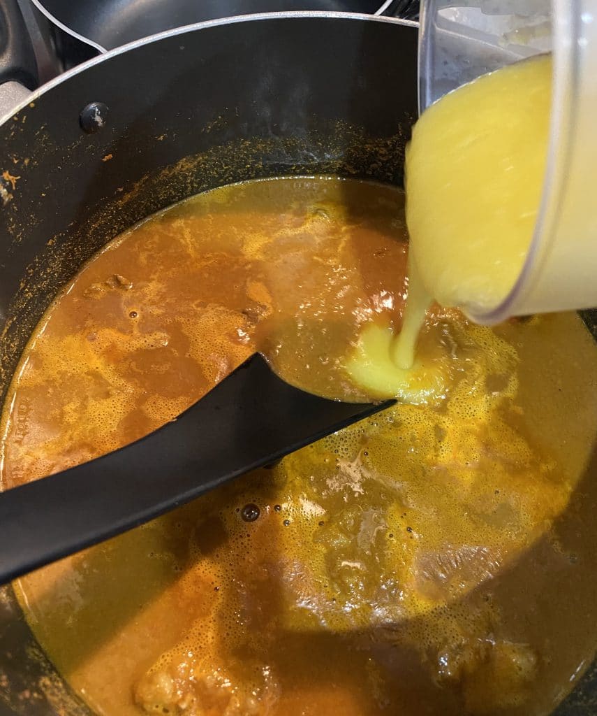 よく混ぜ終わったらバター30gと小麦粉30gを合わせておいたペースト入れてひと煮立ちしてください。
