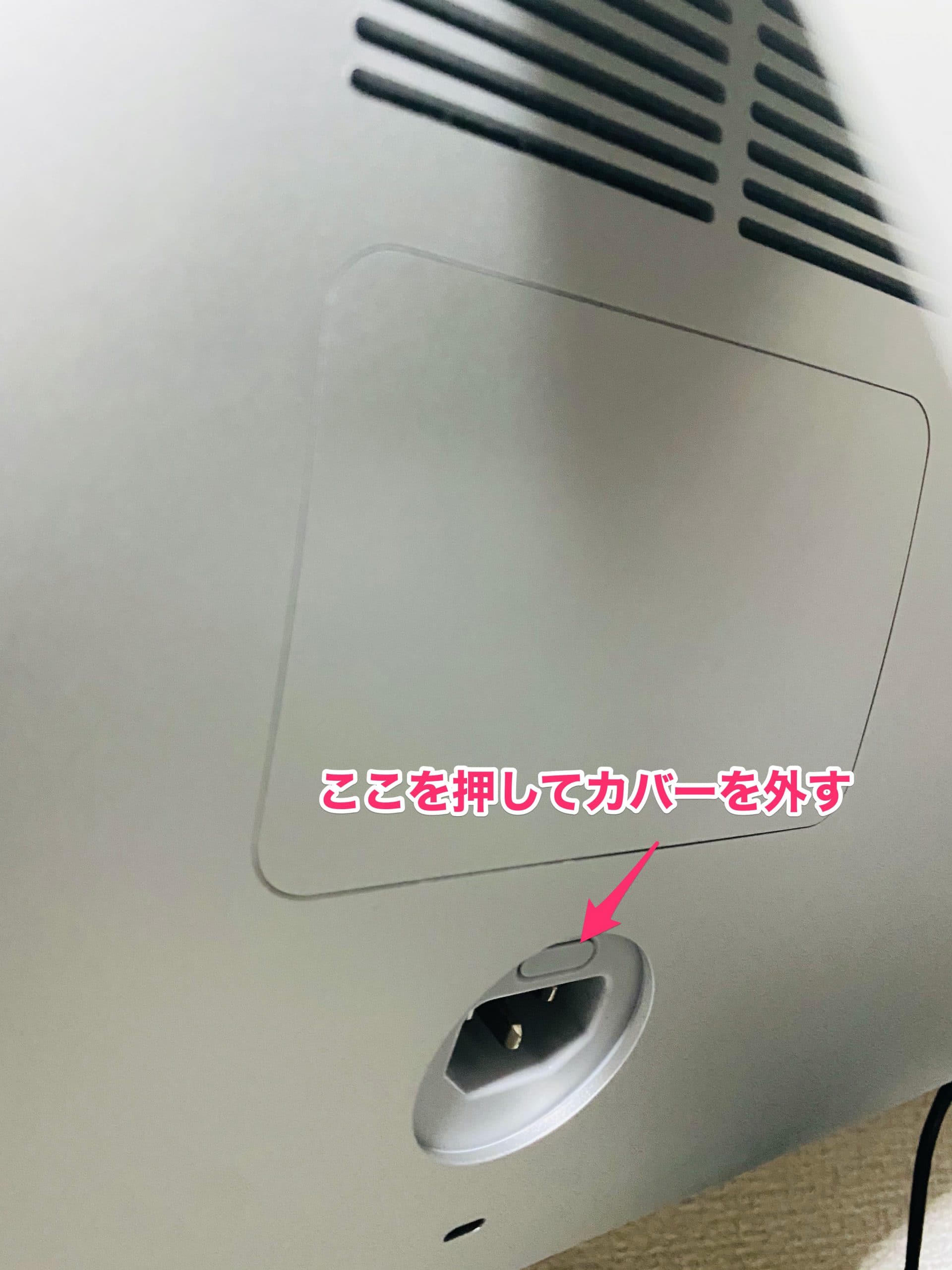 電源コードを外した箇所にボタンがあるので押してメモリの上蓋を外します。