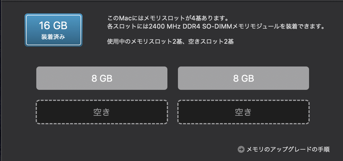 増設前は以下のとおりです。16GBのスペックです。