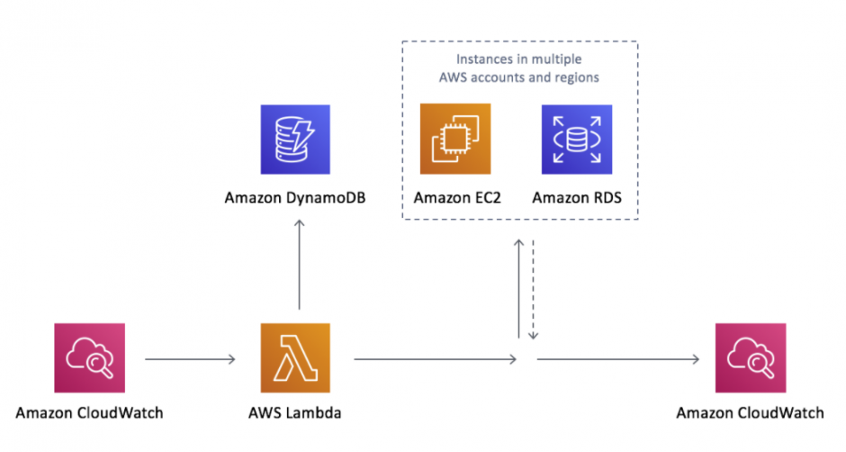 AWS Instance Schedulerのアーキテクチャは以下の通りです。